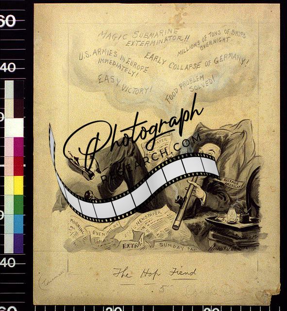 The hop fiend,World War I,WWI,Smoking,Fantasy,1917,Herbert Johnson,Cartoon