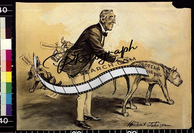 President Woodrow Wilson trying to coax the European war dog,c1916,Cartoon