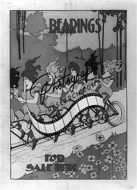 Bearings,For Sale Here,c1890,Women riding bicycles,Hair flapping in the wind