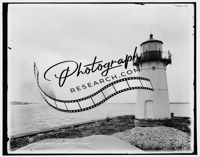 Upper entrance,lock canal,lighthouses,boats,Sault Stephen Marie,Michigan,MI,1890