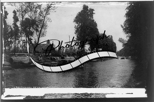 Canal De La Viga,Mexico,Flat-bottomed boats on canal,c1884