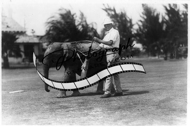 Caddie,golfer at Miami Beach,Florida,FL,small elephant as caddy,1930-1952
