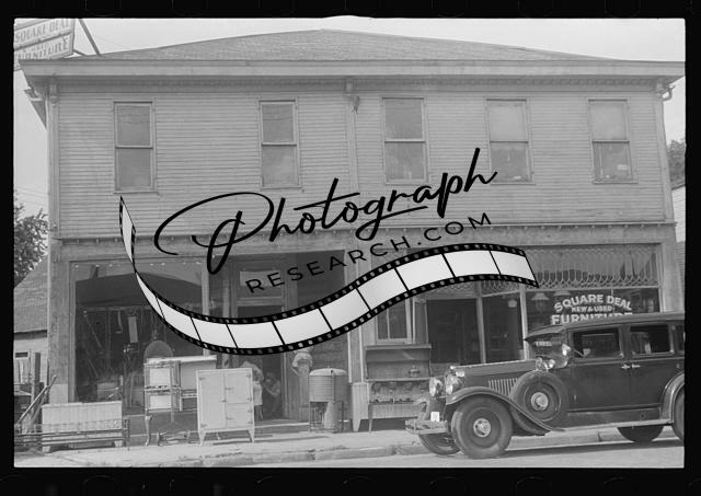 General caption for this series of images: Circleville, county seat of Pickaway County. Average small Ohio city, depending upon surrounding rich farmlands for its livelihood. Because of its non-industrial surroundings, retains much of old-time flavor. Outstanding industries: Eshelman's Feed Mill. Employs 150-200 men the year 'round. Pay averages about eighty-five cents an hour. Container Corporation of America makes paper out of straw, can absorb by-product of all neighboring farms. In addition, a number of canneries and feed mills. During depression many farms of the district were foreclosed. People who lost homes naturally gravitated toward the town. A town of its character is unable to house new influx of population. Consequently there sprang up around it an extensive Hooverville. Circleville got its name through having been built in a circle as a better protection against the Indians. For further information Chamber of Commerce, Circleville. Circleville is the home of Ted Lewis.