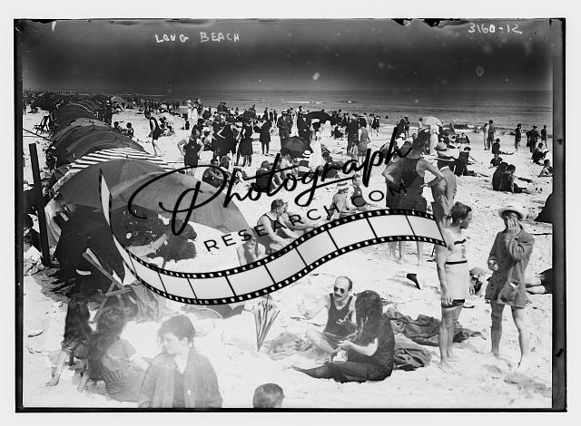 Long Beach,swimmers,Bathing suits,sand,umbrellas,1910-1915