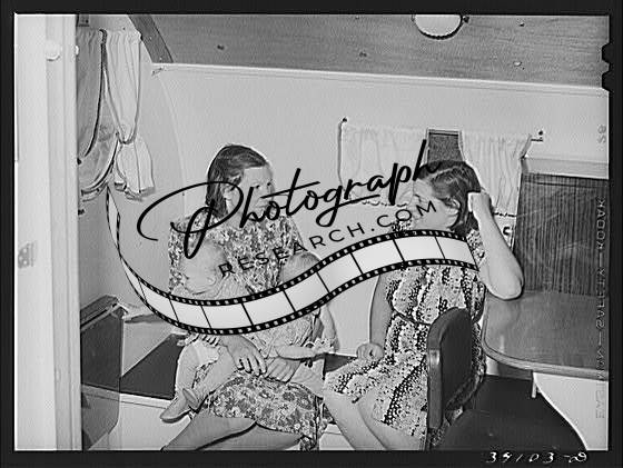 Title: Idaho state employment representative (left) talking to farm workers who live at the FSA (Farm Security Administration) migratory labor camp mobile unit. Wilder, Idaho. The state employment service has offices at most FSA camps