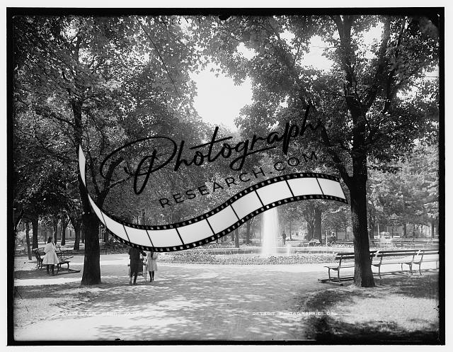 Cass Park,fountains,trees,water,benches,paths,trails,Detroit,Michigan,MI,1880