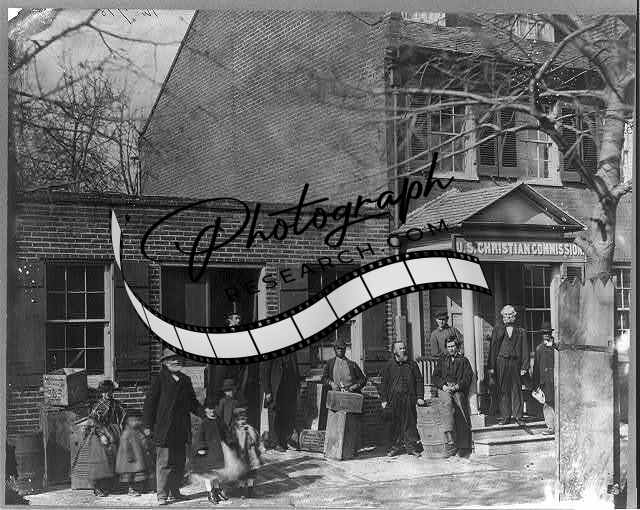 US Christian Commission Office,staff posed in front,Washington,DC,1862-1865
