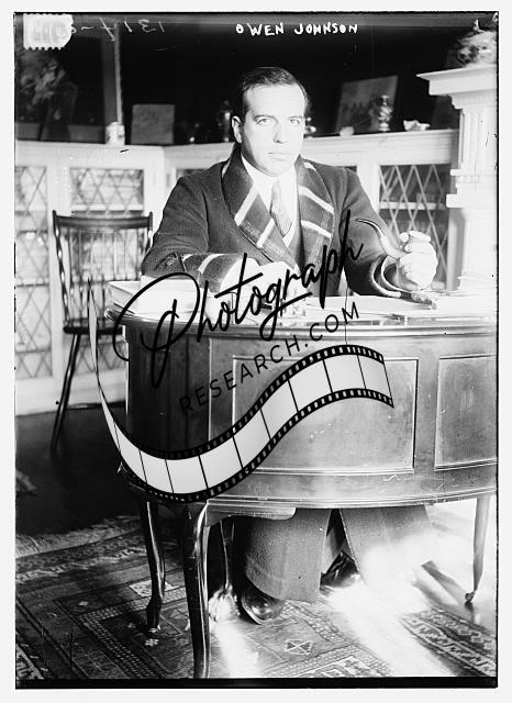 Owen McMahon Johnson,1878-1952,American writer,seated behind desk,smokig pipe