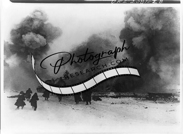 Landing party,tank dislodging fascists,village,USSR,War,Russia,A Garanin,1942