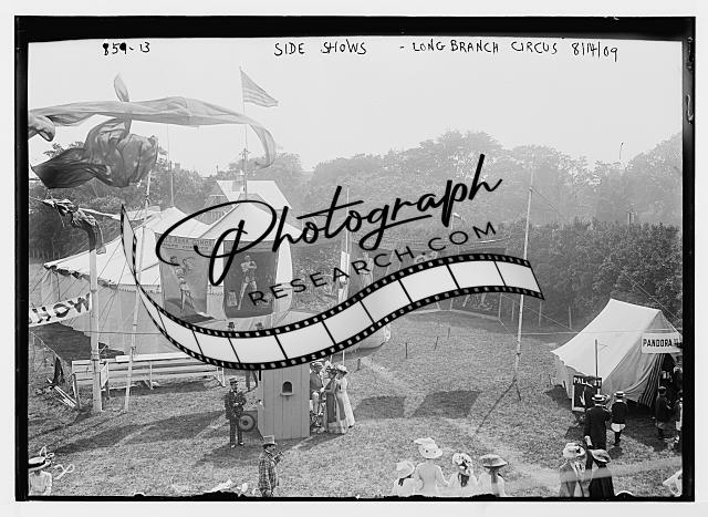 Side show concessions,Society Circus,Long Branch,August 1909,flags,people