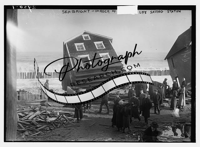 Seabright -- Wreck of life saving station,January 6,1914,tipped over house,NJ