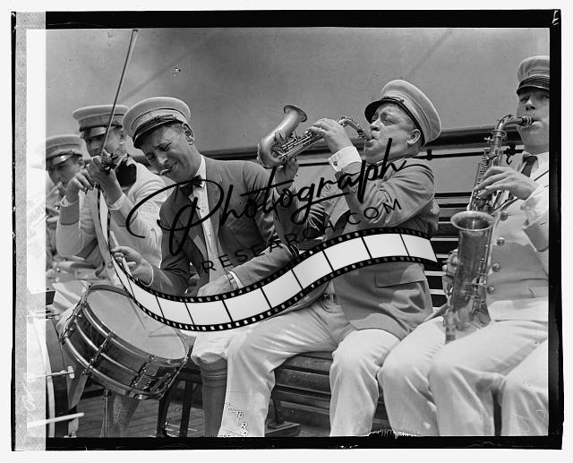 Military band members playing instruments,1923,Musical