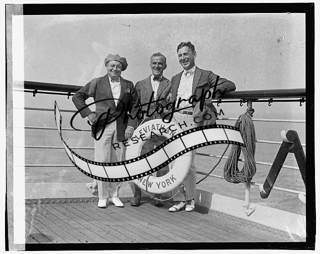 Three men on ship 'Leviathan,New York',1923,Naval