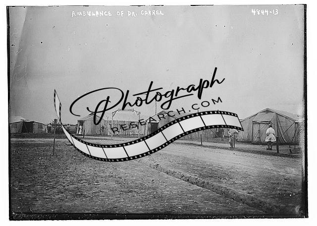 Dr. Carrel's ambulance,medical transportation,buildings,tents,Bain News Service