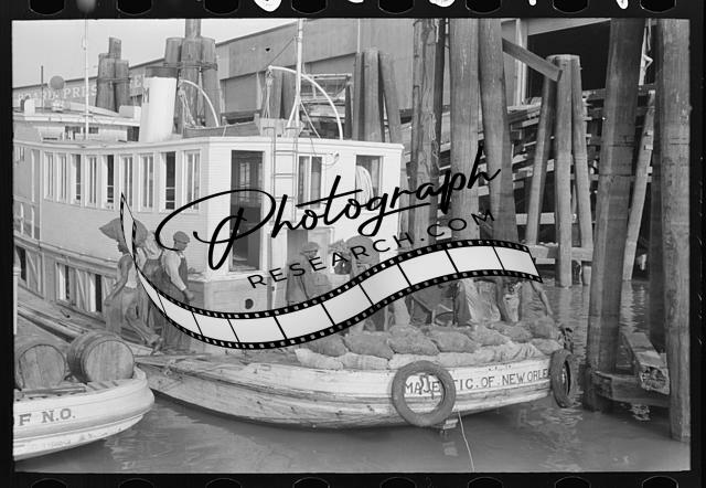 Unloading oysters from packet boat arriving at New Orleans,Louisiana,LA,FSA 1