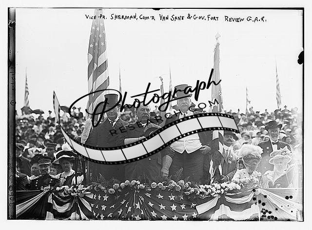 Vice-President Sherman,Commander Van Sant,Governor Fort review G.A.R.,US Flag