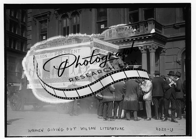 Women giving out Wilson literature,campaign automobile,Woodrow Wilson,President