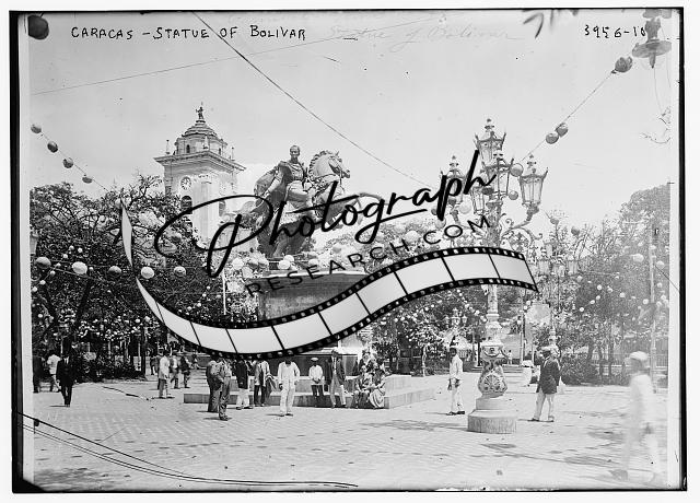 Caracas -- Statue of Bolivar,Philippines,people,elaborate street lamp,Bain News
