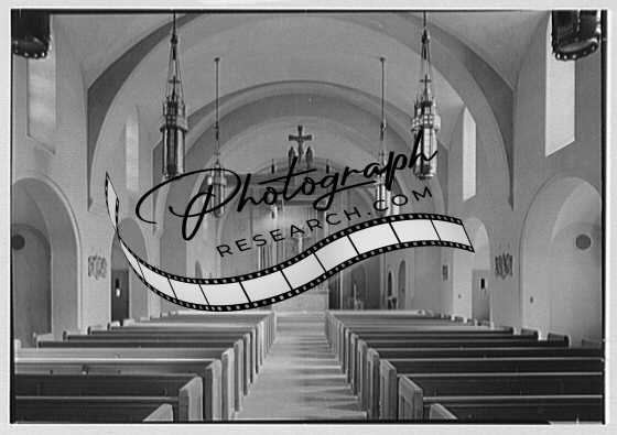 Title: Cardinal Hayes Memorial High School, Grand Concourse, Bronx, New York. Chapel, side view to altar
