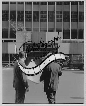 Leo Kornblath on the job. Inspecting plans,New York,NY,Construction,Gottscho
