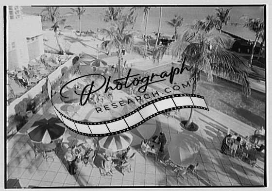 Title: Caribbean Hotel, Miami Beach, Florida. Swimming pool from terrace