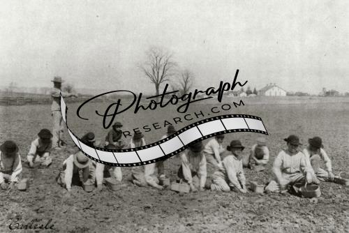 Carlisle Indian School,Boys digging,potatoes,field,agriculture,Pennsylvania,1901