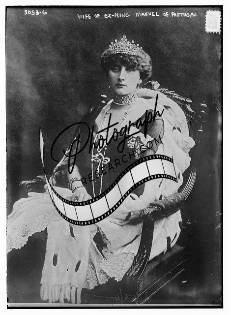 Wife of Ex-King Manuel of Portugal,1910-1915,wearing crown