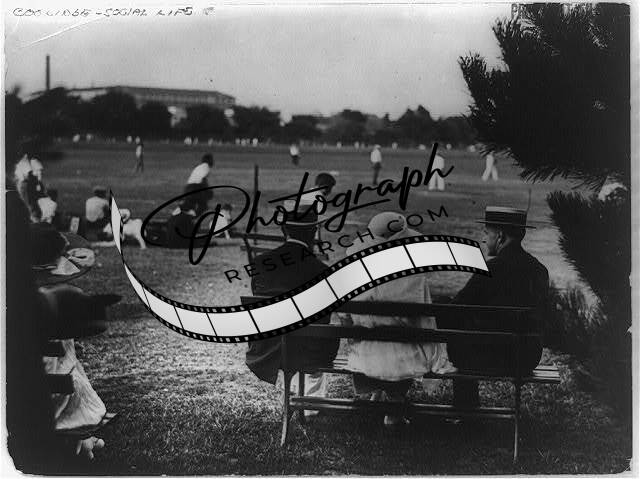 Calvin Coolidge,bench,right,people watching baseball game,sports,spectators,1920