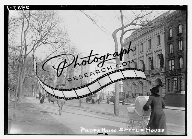 Phipps home--Speyer House,woman pushing stroller,automobiles,1910-1915