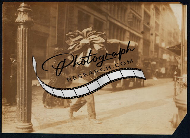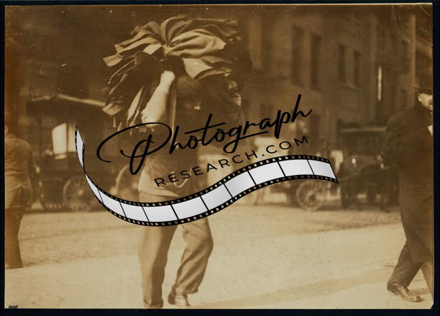 Man carrying bundle of garments,Bleeker Street,New York,Lewis W. Hine,1912