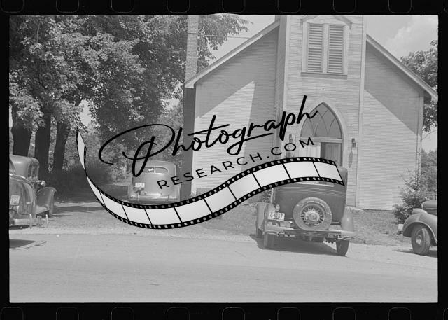 Cars parked outside church,Linworth,Ohio,OH,August 1938,Western Worthington