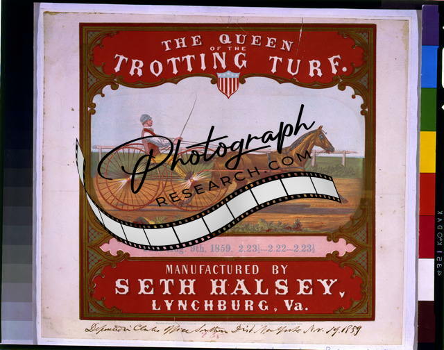 Tobacco label, jockey, Seth Halsey, Lynchburg, Va, 1859