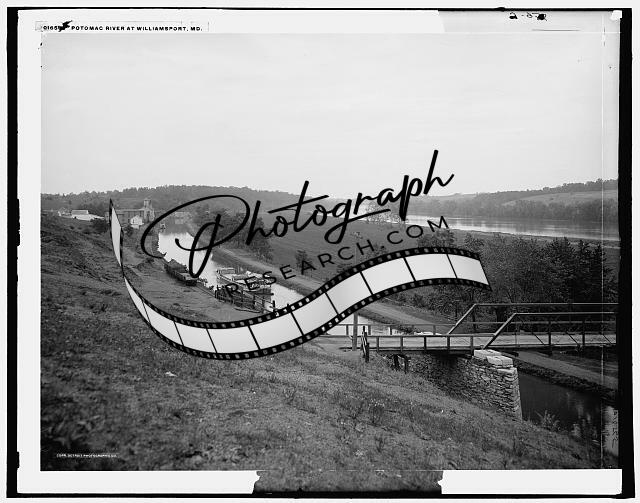 Potomac River,Chesapeake,Ohio Canal,bridge,boats,Williamsport,Maryland,MD,1900