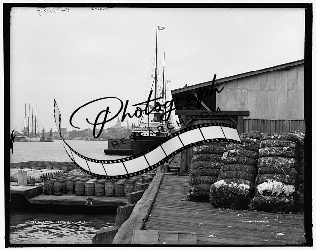 Cotton docks,piers,wharves,shipping,industry,boats,Savannah,Georgia,GA,c1907