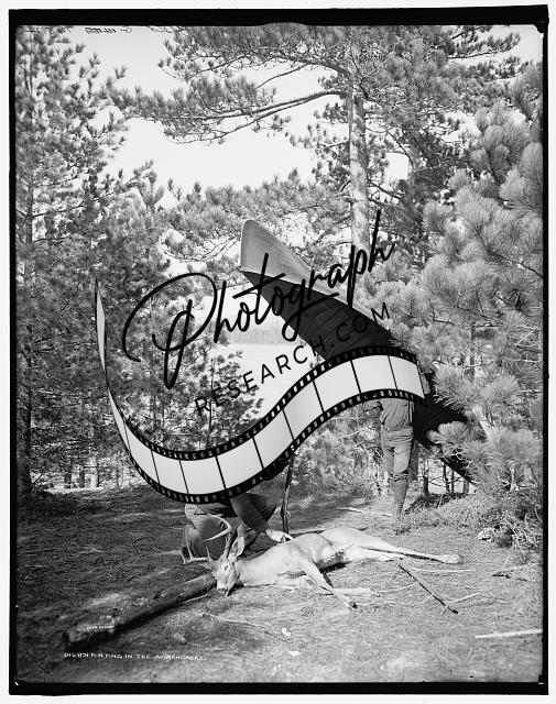 Hunting,deer,dead animals,canoes,boats,Adirondack Mountains,New York,NY,c1903