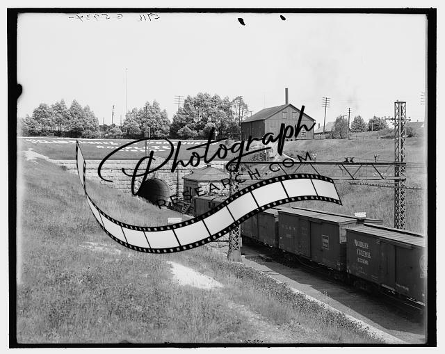 Entrance,Saint Clair tunnel,railroad freight cars,Port Huron,Michigan,MI,1900
