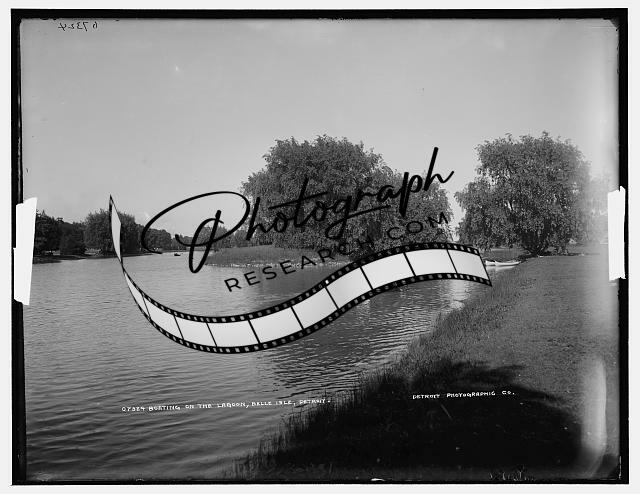 Boating,trees,lagoon,water bodies,canoes,Belle Isle,Detroit,Michigan,MI,1880