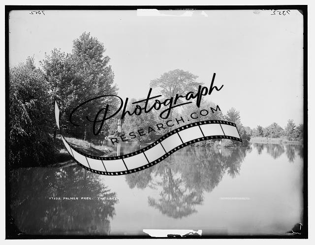 Palmer Park,lake,trees,buildings,water,Detroit,Publishing Co,Michigan,MI,1880
