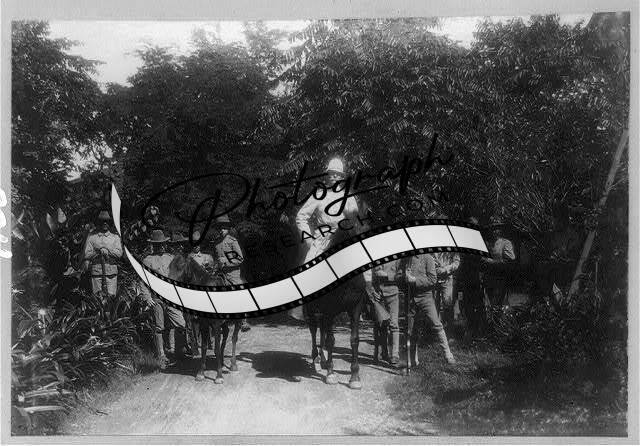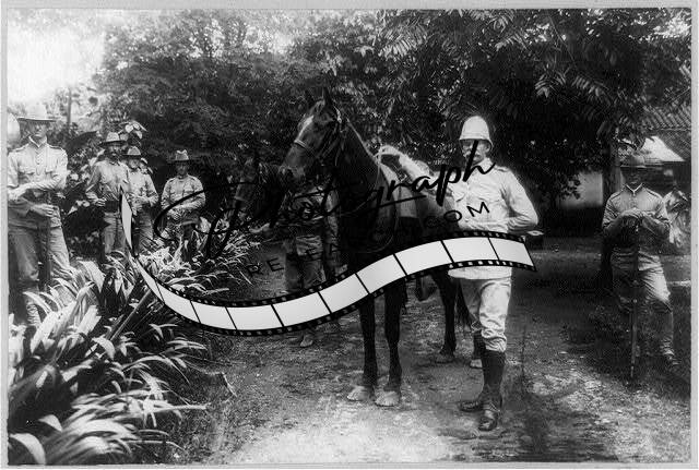 General Henry Lawton posed on horseback,other soldiers,Philippines,1899