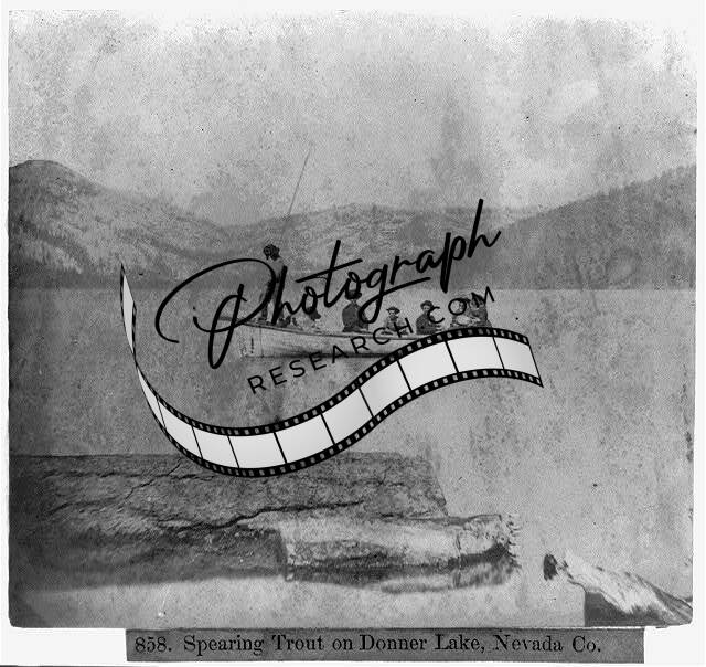 Spearing trout on Donner Lake,Nevada County,California,CA,Sierra Nevada,1866