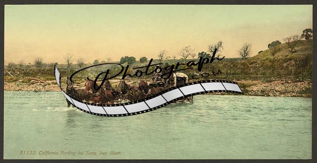 Fording the Santa Inez River,crossing,streams,CA,c1898