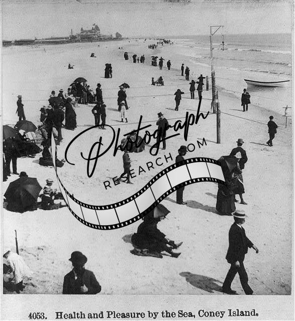Health & Pleasures by the Sea,Coney Island,New York,NY,Beach,Sun,c1885,Umbrellas