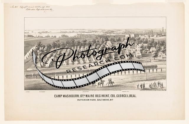 Camp Washburn 10th Maine Regiment, Col. George L. Beal, Patterson Park, Baltimore, Md.