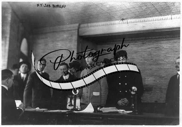 Unemployment,New York City,NYC employment bureau,opening day,men in office,1914