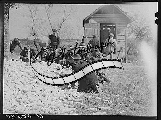 Title: Putting the corn in the crib to store for winter feed after shucking on Hooper Farm near Hightowers and Prospect Hill. Caswell County, North Carolina
