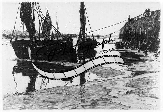 Low tide,Honfleur,France,1887,Two Moored Ships,Charles Adams Platt,Photograph
