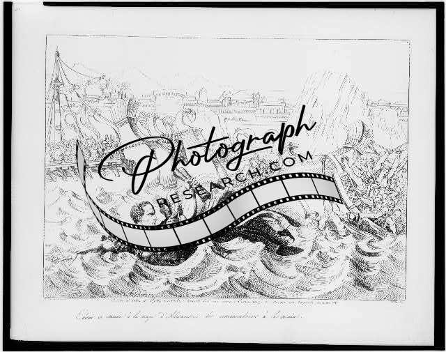 Cesare si salva in egitto,nuotando,1819,Julius Caesar swimming,shipwreck,Egypt