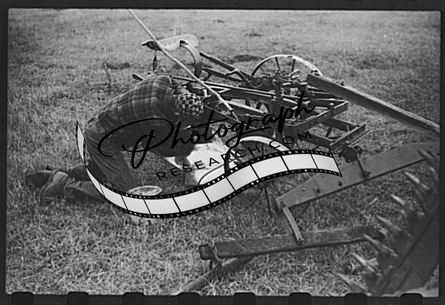 Title: Greasing plow which will remain outdoors during the winter, Cavalier County, North Dakota