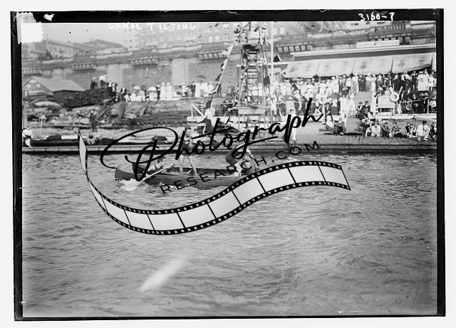 Canoe Tilting,three canoes,July 25,1914,spectators,water,paddles 1