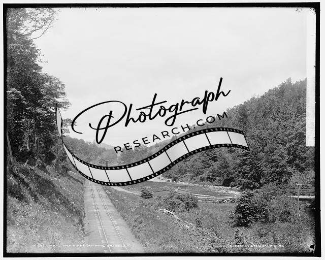Mail train approaching Gassetts,railroads,Connecticut River,Vermont,VT,1900